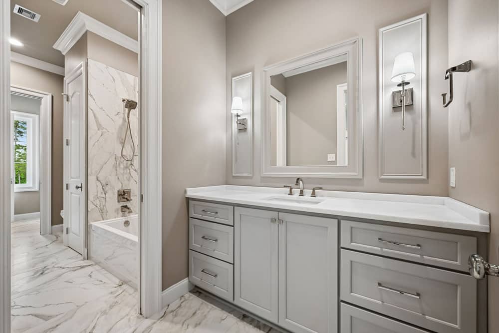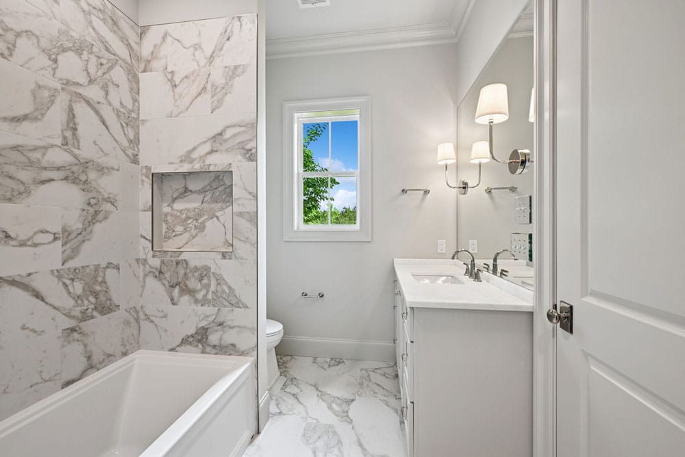 This year’s Parade Home was thoughtfully designed to blend classic Southern architecture with refined, modern living. From the warm Ivory brick exterior and soft neutral shutters to the welcoming front porch with graceful arches, every detail creates a sense of comfort and understated luxury.